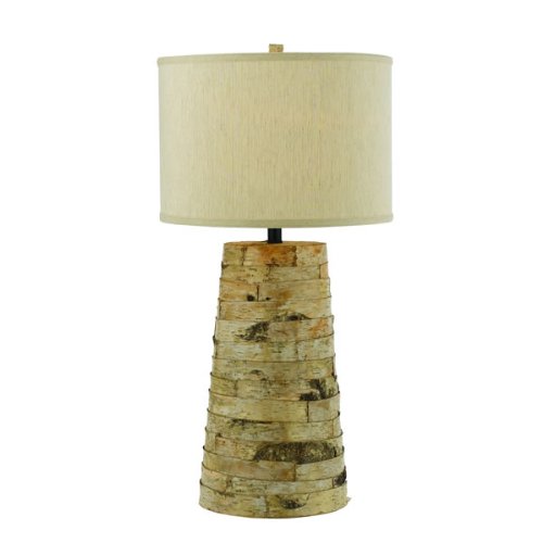 Natural birch tree bark wraps the obelisk shape base of this hand-crafted table lamp. Its beautiful hardback drum shade is made of natural, unbleached linen. Since each lamp is individually hand-crafted by artisans, no two will look exactly alike.