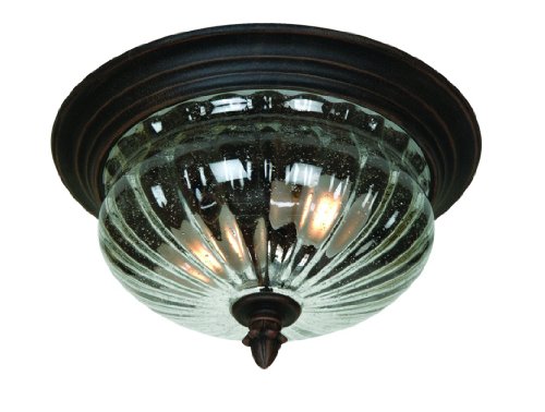 Traditional Outdoor Flush Mount in Bronze with Clear Seeded Ribbed Glass glass from the San Marino Collection by Artcraft. Dimensions: 8.00 H 12.50 W