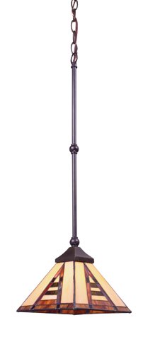 Finish:Classic Bronze, Glass:Tiffany Style Glass, Light Bulb:(1)75w A19 Med F Incand This collection marries Mission styling with Art Deco hardware.