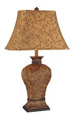 The Detailed Description of Lite Source C41042 Gavril Table Lamp, Walnut Finish Body with Tan Jacquard ShadeFeatures