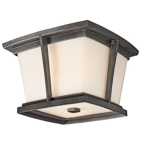 The Detailed Description of Kichler Lighting Kichler 49220AVI FL Brockton 2-Light Fluorescent Outdoor Flush Mount Ceiling Light, Anvil Iron with Satin-Etched Cased Opal GlassFeatures