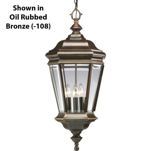 Progress Lighting P5574-33 Cast hanging lantern with clear beveled glass. Hinged door for easy relamping. Cobblestone Crawford Collection Cobblestone 4-light Hanging Lantern Impressive and stately, the Crawford Collection is finely crafted from die-cast aluminum for long term performance and features a rich hand painted finish. Cobblestone finish Clear beveled glass 12 In. Diameter x 29-3/8 In. Height Uses (4) 60-watt candelabra bulbs