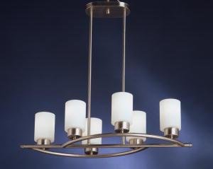 For those looking for a decidedly modern, urban design in their homes, the Modena Collection fits the bill perfectly. Its hand formed frame features our Satin-etched cased opal glass which gives the Modena Collection an ultra clean and chic look. This is truly an inspired piece for the homeowner looking to add lighting as unique as they are. This Modena fixture offers a design that can never be duplicated. It can be either stem hung as a pendant or as a semi-flush mounted fixture. Its 6-light design uses 100-watt (max.) bulbs for incredible lighting power. At 29' long and 38' high this fixture is ideal for any room that calls for a modern touch.