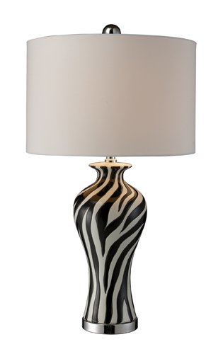Dimond D1882 Carlton Table Lamp in Black, White and Chrome with Pure White Faux Silk Shade and Pure White Fabric Liner W:14" H:25" Bulbs: 1, Bulb Type: 150W Med. Shade Height: 9, Shade Width: 14 Carlton Black, White and Chrome Ceramic