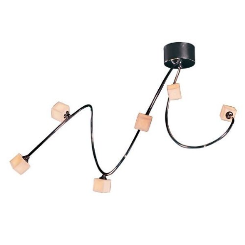 Finish:Chrome, Glass:Matte White, Light Bulb:(6)20w T3 G4 12v Xenon Following the graceful lines of a trapeze artist's flight through air, Circus presents shimmering chrome spirals and swirls gracefully showcasing simple cubes of light along their paths. Though firmly affixed, the delicate lights seem to move through the air with the slightest of ease.