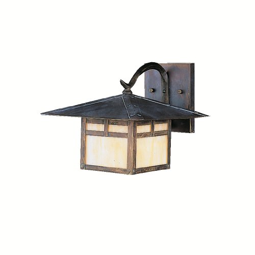 From Kichler's La Mesa collection, this fantastic mission styled outdoor wall mount will look great outside your home. Seen here in an exclusive bronze finish with honey opalescent glass panels. Solid brass construction.