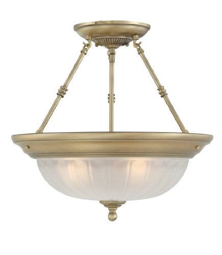 ML1718A Finish: Antique Brass Pictured in Antique Brass Features: -Semi flush mount.-CUL listed. Options: -Available in antique brass, polished chrome, empire silver, palladian bronze or fresco finish. Construction: -Steel construction. Specifications: -120 Volts AC.-Accommodates (4) 100W A19 medium base bulbs (not included). Dimensions: -Shade dimensions: 4'' H x 14'' W.-Overall dimensions: 17.5'' H x 18'' W x 18'' D. Collection: -Melon collection.