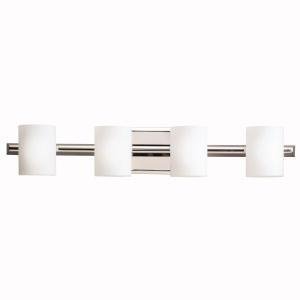 This sleek bathroom light by Kichler features smooth lines and updated appeal. Beautiful cylinders of opal etched glass offer warm light while the simple, beveled frame comes in a brilliant polished nickel finish. The perfect choice for your stylish bath.