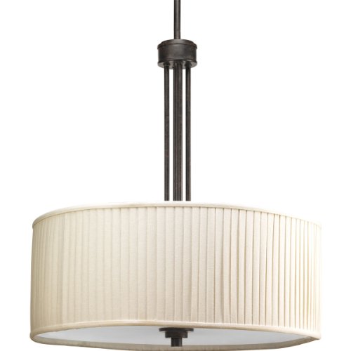 Progress Lighting P3909-84 3-Lt. Pendant - Stem Mount. Highlighted by modern drum shades in cream linen fabric with soft side pleats. Finished in Espresso, this traditionally rooted design is where classic vintage styling meets minimalistic lines. Espresso