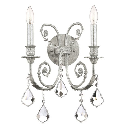 Finish:Olde Silver, Crystal:All Clear Majestic Wood Polished, Light Bulb:(2)60w B10 Cand C Incand Regis 2-Light Crystal Wall Sconce European inspired traditional design Finish dressed in our classic crystal is a perfect match for any traditional setting