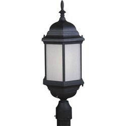 The Detailed Description of Forte Lighting 17010-01-04 Traditional 1-Light Energy Star CFL Exterior Post Mount, Black Finish with Frosted Seeded GlassFeatures