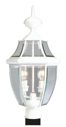 Livex Lighting 2254-03 White Outdoor Post Head Monterey 10.5"Dia.x21.5"H, 2 60w Cand, Clear Beveled Glass Glass / Shade Solid Brass