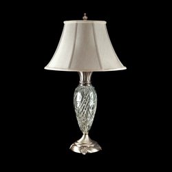 Finish:Antique Pewter, Light Bulb:(1)150w A21 3-Way Med F Incand Crystal Table Lamp Hand-cut 24% lead crystal Grey fabric shade Turn knob switch
