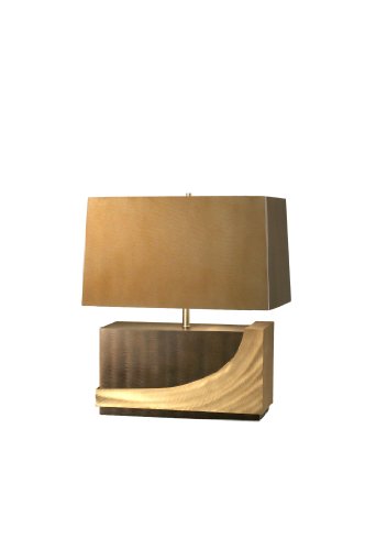 The sweeping design of this glowing, handsome table lamp will enhance any contemporary room. Magnificent root beer-finished aluminum with silver accents adorn the base while a large, warm, high quality rectangular shade of bronze aluminum hovers over it. This unique and impressive lamp comes from the creative minds of Nova Lighting.