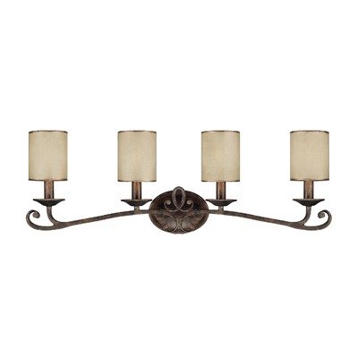 Finish:Rustic, Shade:Moonlit Mica, Light Bulb:(4)60w B10 Cand F Incand Reserve 4 Light Vanity Fixture Stay-straight shades.