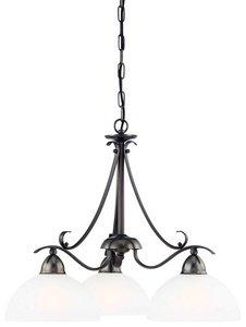 Three-light chandelier in Oiled Bronze finish with etched glass.
