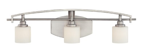 Finish:Antique Nickel, Glass:Opal Etched Glass, Light Bulb:(3)100w T4 G9 120v Halogen Taylor 3 light bath fixture
